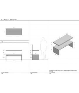 Acest set pentru baie realizat din lemn masiv va incalzi cu siguranta spatiul dvs de baie. Compus din blat si bancuta acest produs poate fi realizat din lemn masiv de rasinoase sau stejar. Produsul de prezentare este realizat din lemn masiv de rasinoase cu grosimea de 5,4cm in ceea ce priveste blatul si 2,7cm in ceea ce priveste bancheta / bancuta. Dimensiunile sunt urmatoarele: 120cm (L), 50cm (a), 40cm (h bancuta). Specific lemnului de rasinoase sunt vizibile nodurile, textura si, fibra lemnului. Pentru un aspect contemporan, scandinav se va alege lemnul masiv de stejar (grosime 4, respectiv 2cm). Produsele se livreaza asamblate, fiind agabaritice. Impreuna cu acestea se livreaza si un model consolele metalice de prindere pe perete (pentru blat), insa urmare a greutatii substantiale a sa, produsul se va acora in perete cu ajutorul unui specialist adecvand sistemul de prindere la tipul de perete.