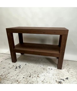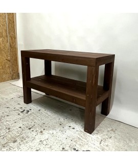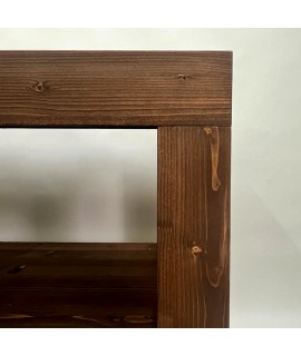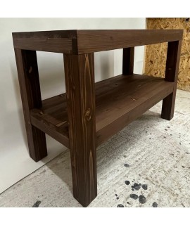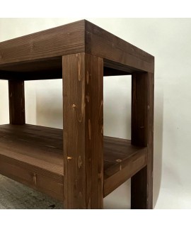 Consola pentru lavoar baie este realizata din lemn masiv de rasinoase si este compusa dintr-un blat (panou lemn masiv rasinoase cu grosime de 2,7cm, completat de o rama perimetrala ce conduce grosimea aparenta la 8cm, cu rol structural si de aspect), 4 picioare lemn masiv cu sectiunea de 8cm si o polita (panou lemn masiv rasinoase cu grosime de 2,7cm, completat de o rama perimetrala ce conduce grosimea aparenta la 8cm, cu rol structural si de aspect). Dimensiuni produs de prezentare: 110cm (L) | 50cm(a) | 75m (h). Specific lemnului de rasinoase sunt vizibile nodurile, textura si fibra lemnului – aspect vintage. Pentru un aspect contemporan, scandinav se va alege lemnul masiv de stejar. Produsul se livreaza asamblat, fiind agabaritic.