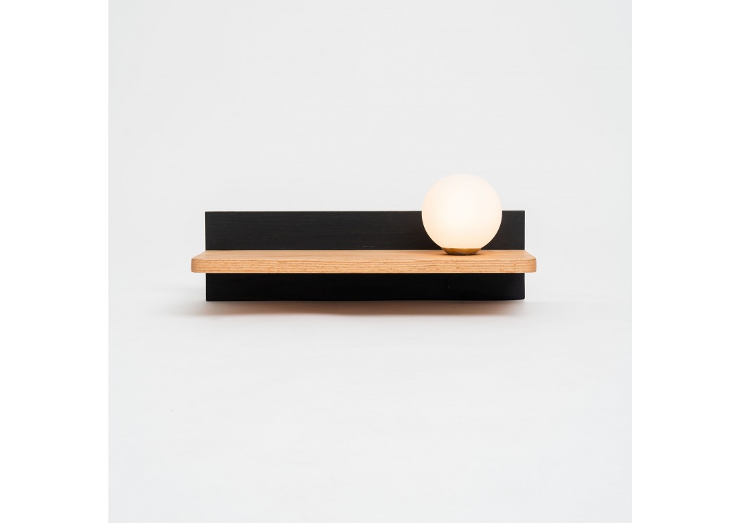 Functionalitate si design in acelasi obiect. Realizata din lemn masiv de stejar cu grosime de 2cm, aceasta noptiera-lampadar reprezinta un obiect ce infrumuseta dormitorul tau. Combinatia negru - natur este una versatila, fiind protrivita pentru orice tip de amenajare. Lampa se conecteaza la priza (220v). Produsul poate fi vazut in showroom-ul din zona Dorobanti. Dimensiuni: 50cm (L), 14cm (h), 19,5cm (adancime polita).